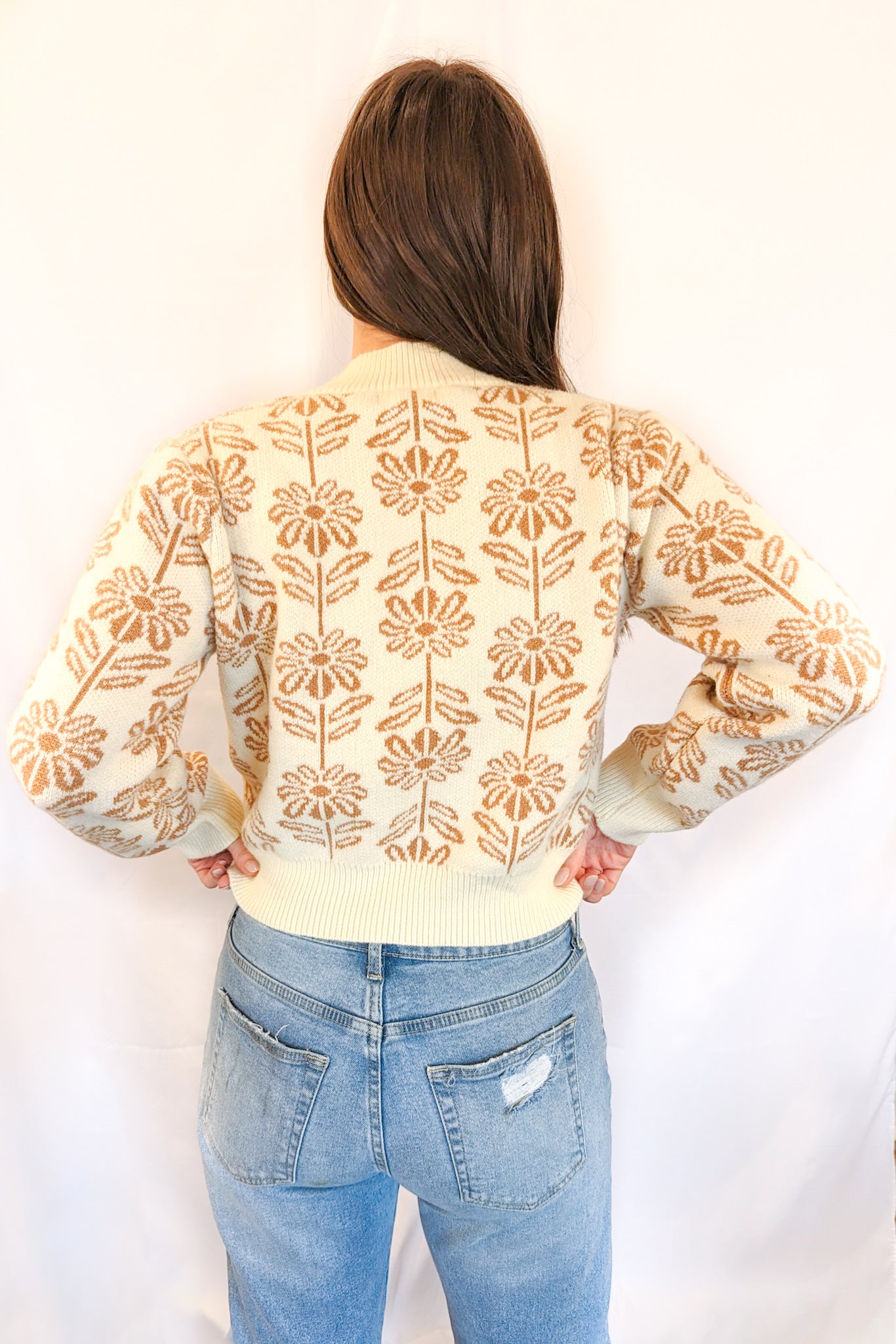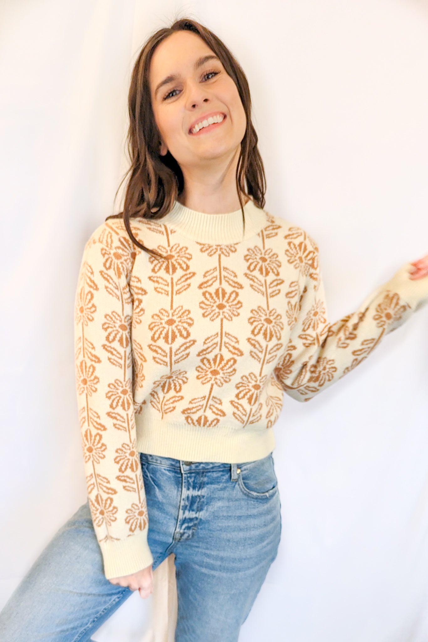 This beige beauty features a delicate floral print, bringing a touch of whimsy to your winter wardrobe. The cozy knit fabric ensures comfort, while the floral design adds a dash of elegance, making it the perfect sweater for both casual and chic occasions. Let your style bloom with this must-have floral-printed sweater.